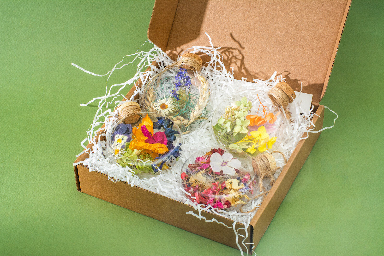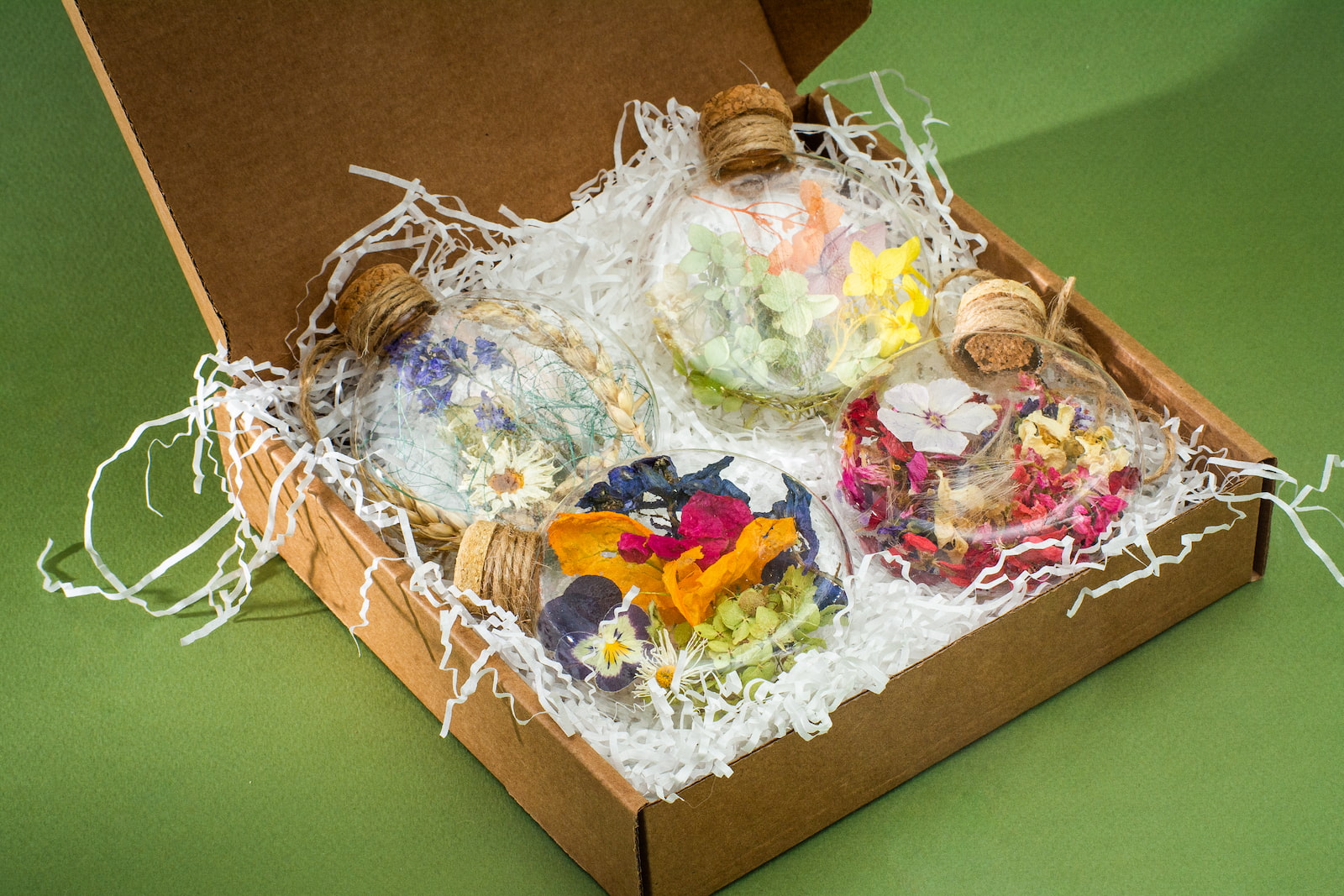 ЯРКИЙ: Шар, наполненный ярким гербарием из летних цветов, вдохновит вас на творчество и созидание, даст импульс новым идеям, самовыражению разбудит полёт мысли в наступающем году.