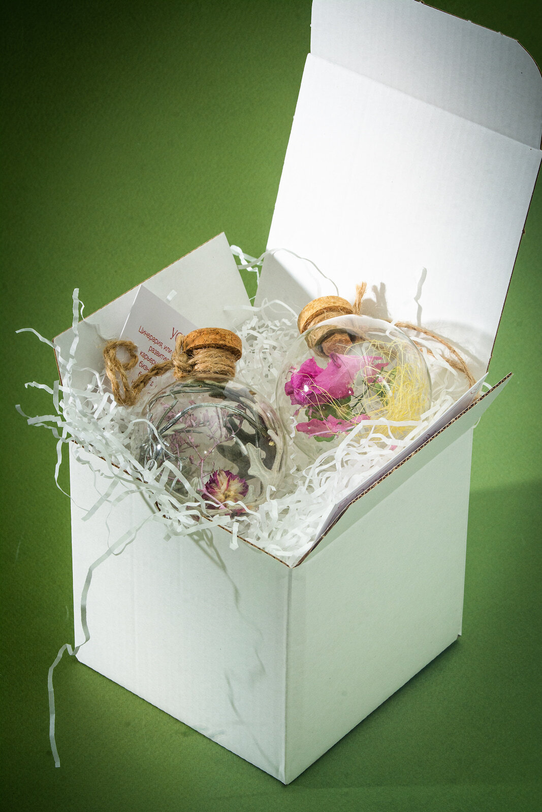 Шары сделаны из легкого, но прочного стекла. Цветы в шарах бережно высушены и сохраняют цвет, если беречь их от прямых солнечных лучей. Каждый шар уникален, как и сама природа, композиция внутри может немного отличатся от той, что вы видите на картинке по размеру и цвету.