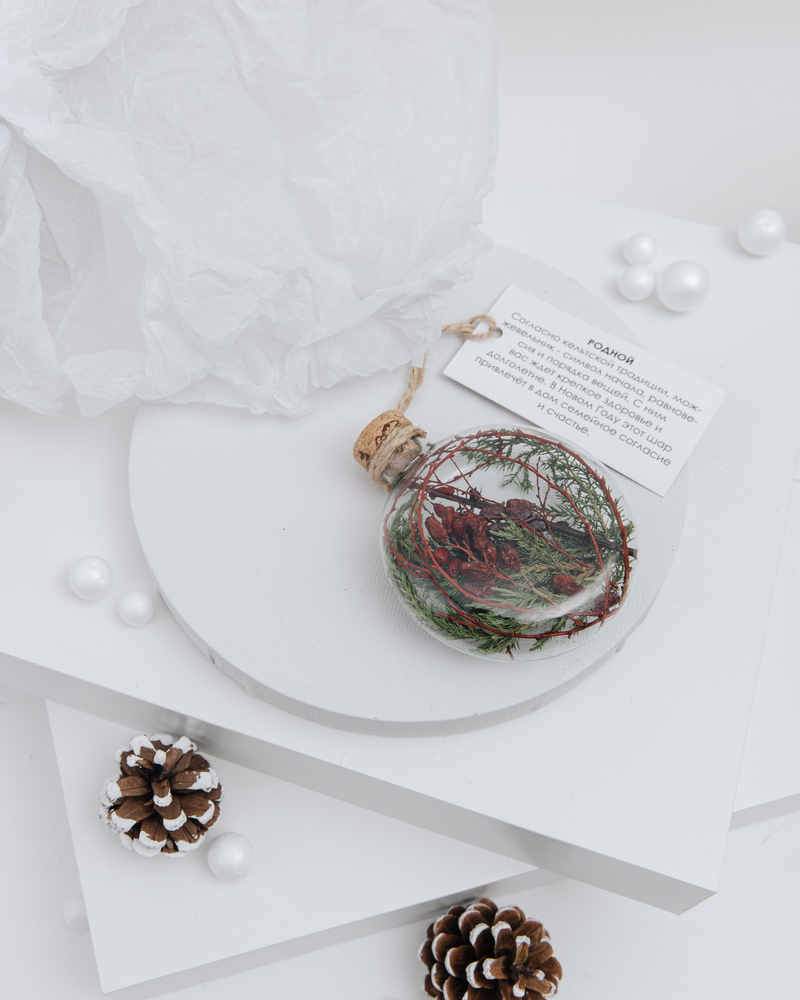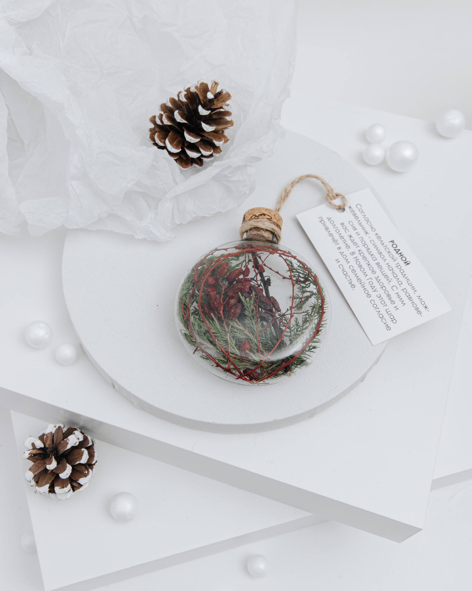 К каждому Шару прикреплена бирка с Теплым Пожеланием, составленным на основе символизма растений внутри шара. Зачарованные Ёлочные шары - авторская идея и очень личный подарок для ваших близких!